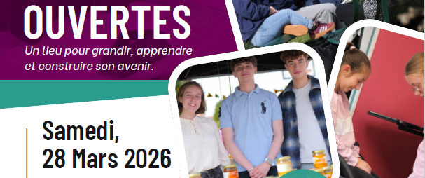 Les inscriptions scolaires et en apprentissage ayant débutées dans l’établissement Saint Joseph de Cluny pour la rentrée 2026/2027, vous pouvez vous rendre à la journée portes ouvertes qui aura lieu le samedi 28 mars 2026, de 10h à 17h – Place de l’Hôtel de Ville – 60190 ESTREES SAINT DENIS.