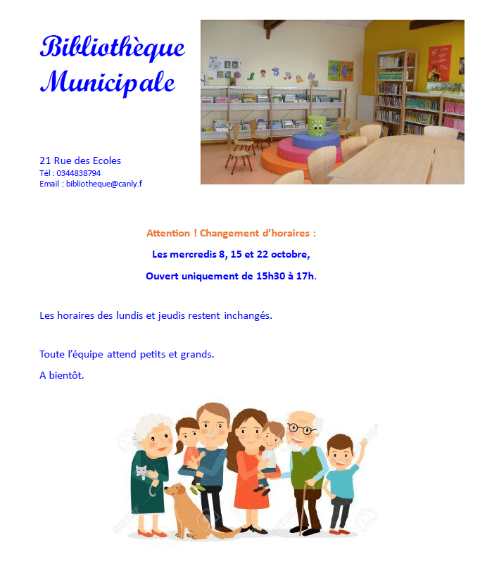 - Permanence du mercredi assurée par Evelyne et Viviane de 15h30 à 19h00