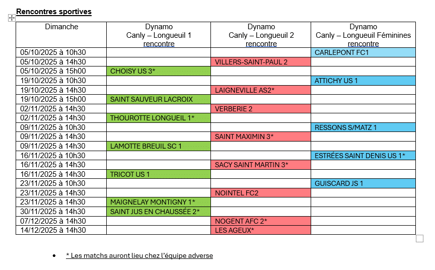 Vous trouverez ci-dessous le planning des rencontres sportives, merci de cliquer sur le tableau.
