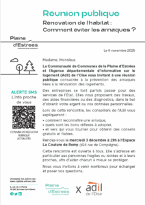 La Plaine d’Estrées et l’Adil de l’Oise vous invitent à une réunion publique consacrée à la prévention des arnaques liées à la rénovation des logements.