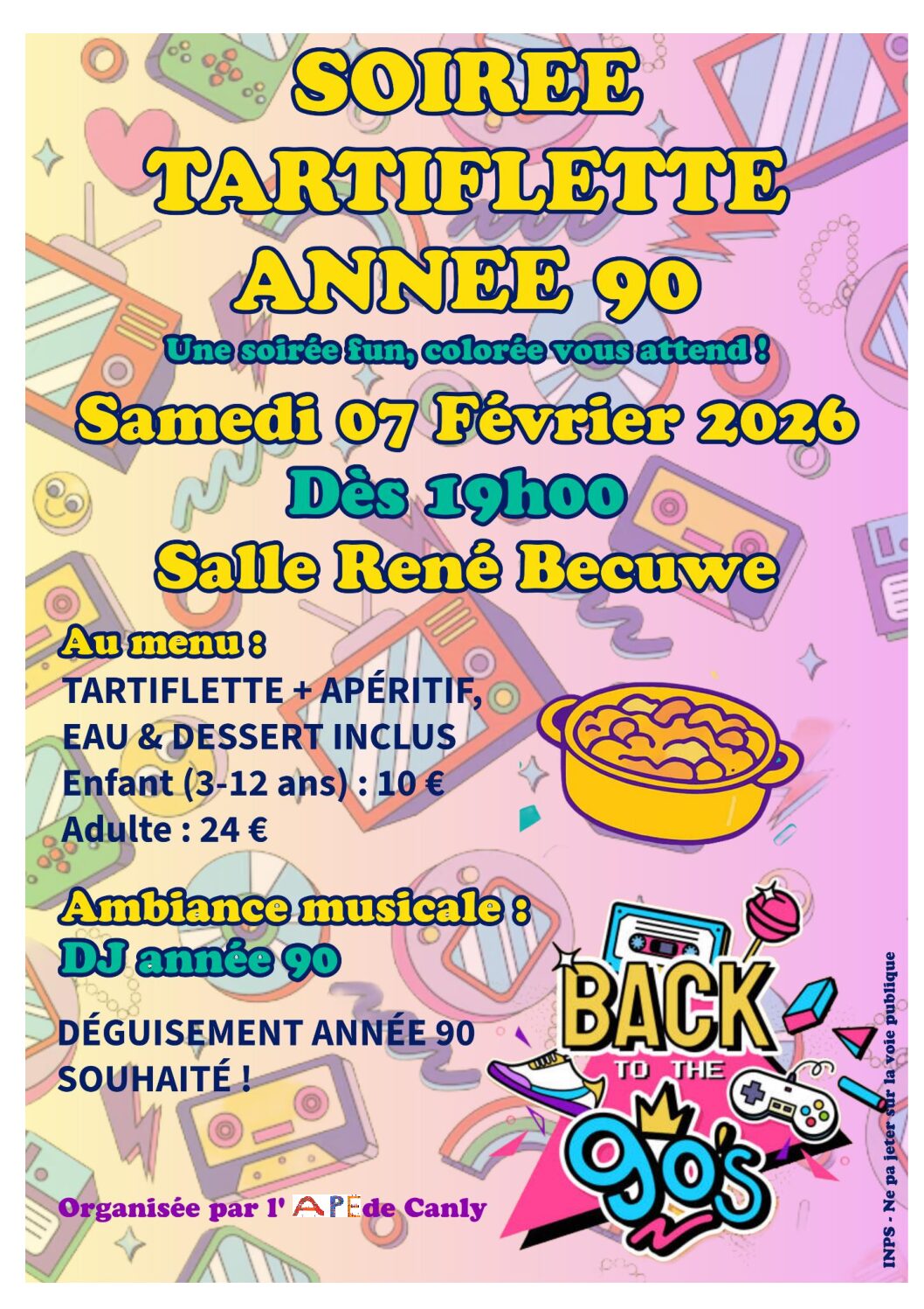 Soirée à thème. Venez nombreux lors de la soirée année 90 organisée par l'APE de CANLY.